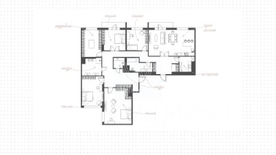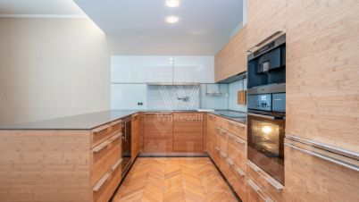 Спланирована кухня-гостиная, 4 спальни, ванная комната, 3 санузла, большая гардеробная с окном, постирочная, холл, 2 балкона. Квартира укомплектована кухонным гарнитуром и бытовой техникой Miele, V-Zug. Гардеробная оборудована итальянской системой хранения Poliform, изготовленной из массива дерева. Перед входом в квартиру организована кладовая с сейфовой дверью и гардеробная для персонала. В стоимость входит 2 машино-места в подземном паркинге.