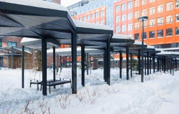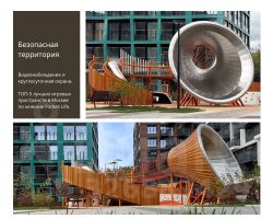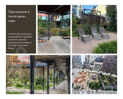Продуманная концепция ландшафтного дизайна, вдохновлённая парком The High Line в Нью-Йорке, включает многофункциональную спортивную площадку, детские зоны, лавочки, беседки и цветники.