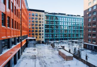 Семь домов квартала представляют собой низкоэтажную застройку — архитектурные объекты с уникальными фасадами.