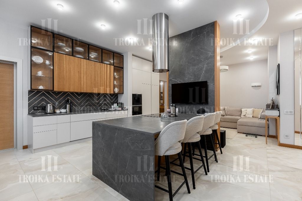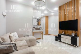 Просторная квартира с качественной дизайнерской отделкой. Современный ремонт выполнен 2 года назад. В отделке использованы только натуральные материалы. Вся техника премиальных брендов. Квартира полностью укомплектована мебелью. Планировочное решение включает большую гостевую зону с оборудованной кухней, три спальни, два санузла. Из окон открываются живописные виды на прилегающие парковые зоны. Высота потолков 3 метра.