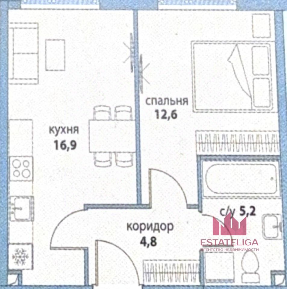 Площадь: 39,1 м² достаточно места для реализации любых дизайнерских решений.