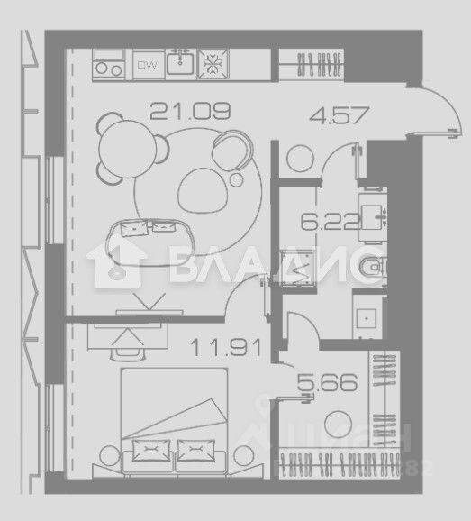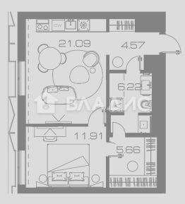 Общая площадь квартиры составляет 51 кв. м, включая просторную кухню-гостиную площадью 21,09 кв. м. Изолированная комната (11,91 кв. м) обеспечивают уединение и удобство для всех членов семьи. Наличие гардеробной зоны позволяет рационально организовать и эффективно использовать каждый квадратный метр помещения.