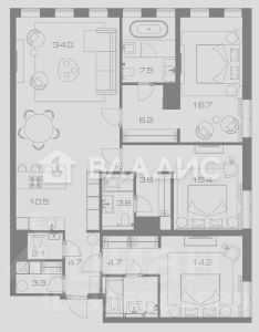 Общая площадь квартиры составляет 137 кв. м, включая просторную кухню-гостиную площадью 34 кв. м. Изолированные комнаты (46,3 кв. м) обеспечивают уединение и удобство для всех членов семьи. Наличие гардеробных зон позволяет рационально организовать и эффективно использовать каждый квадратный метр помещения.