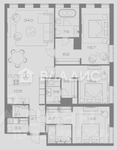 Общая площадь квартиры составляет 137 кв. м, включая просторную кухню-гостиную площадью 34 кв. м. Изолированные комнаты (46,3 кв. м) обеспечивают уединение и удобство для всех членов семьи. Наличие гардеробных зон позволяет рационально организовать и эффективно использовать каждый квадратный метр помещения.
