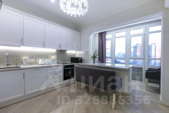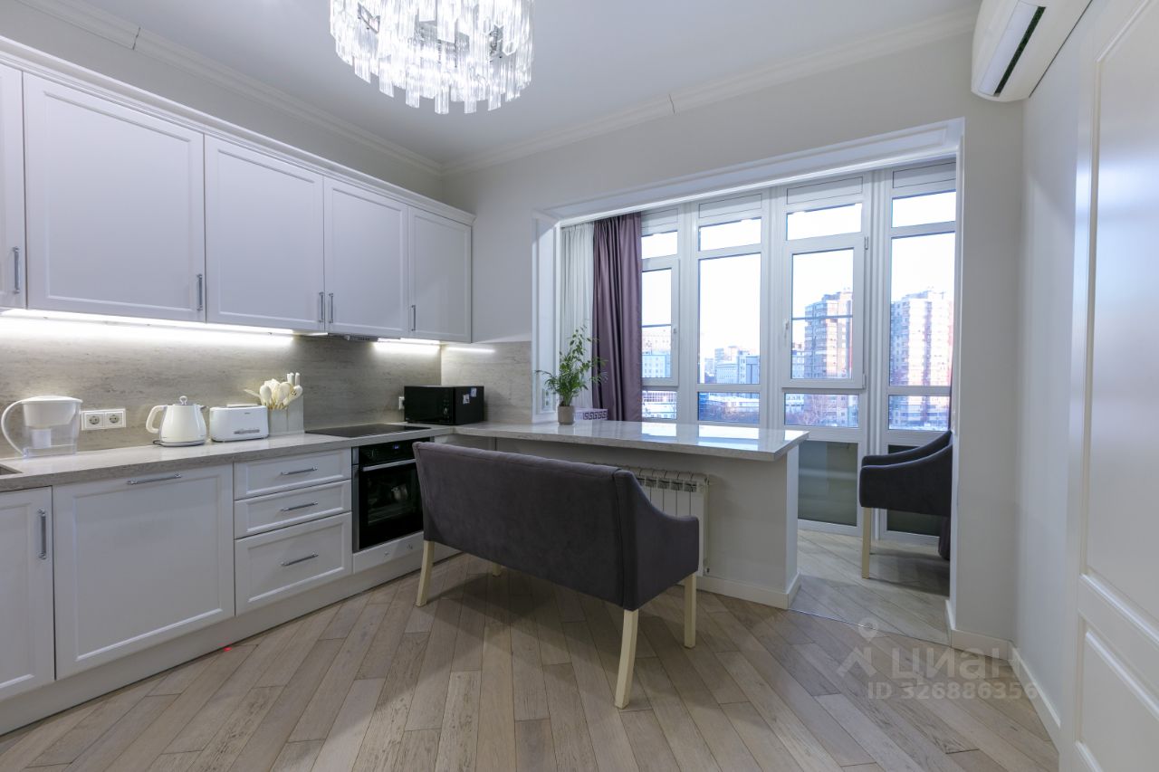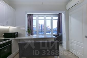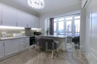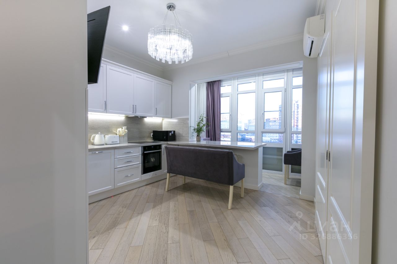 Планировка: стильная, полностью меблированная и оборудованная встроенной техникой однокомнатная квартира в монолитном жилом комплексе бизнес-класса "Зодиак" общей площадью 60 кв. м., 9 этаж 30-этажного дома. Планировка включает в себя: гостиную + кухню + оборудованный для отдыха балкон (15.6 кв. м), спальню (24.6 кв. м), коридор (13 кв. м), санузел (6.8 кв.м). Вся встроенная техника остается в квартире. Столешница из природного камня по всей траектории кухни, изготовленная под заказ. Домофон, кондиционер Daikin, холодильник LIEBHERR, окна REHAY, варочная панель и посудомоечная машина Neff, регулируемые радиаторы, лучшая плитка на рынке Atlas Concorde, стиральная машина SIEMENS на 8 кг, чугунная большая ванна, которая прослужит очень долгое время, бойлер Ariston, подвесной унитаз Jacob Delafon, инсталляция Grohe. Дизайнерские, дорогие люстры и светильники, шторы, сшитые на заказ под интерьер.