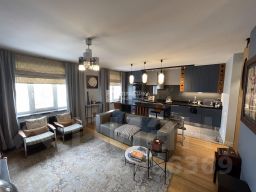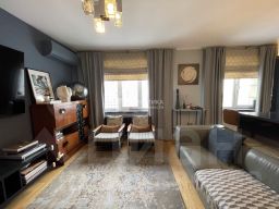 Представляем стильную квартиру, созданную по авторскому проекту в одном из самых престижных жилых комплексов Москвы. Интерьер продуман до мелочей: пространство трансформировано из трёхкомнатной планировки в современное открытое решение, идеально подходящее для комфортной жизни и работы дома.