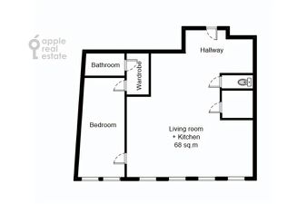 Планировка: гостиная объединена с кухней; санузел, спальня со своим санузлом и гардеробной, дополнительное спальное место на антресоли.