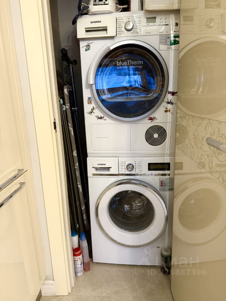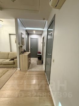 Планировка квартиры включает в себя три комнаты, две из которых можно использовать как спальни, а одну — как гостиную, она же совмещена с просторной кухней. Зона кухни и гостиной разделена раздвижной стеклянной перегородкой. Из кухни дверь в постирочную, где установлены в колонну стиральная и сушильная машины. В квартире два санузла: гостевой и один полный с ванной. Подогрев пола в зоне плитки. Кондиционеры. Окна выходят на две стороны: во двор и на улицу, обеспечивая хороший уровень естественного освещения. Также есть маленький открытый балкон.