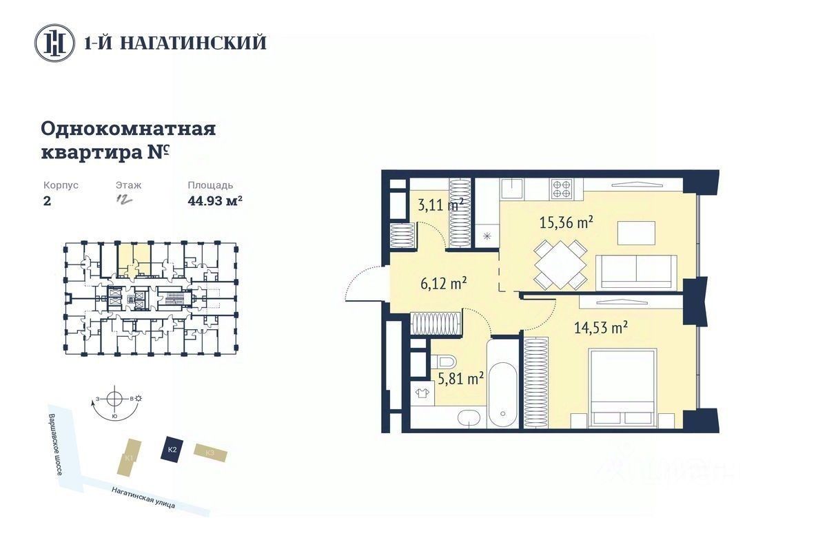 Арт. 110326236 Шикарная квартира планировки евро два(у застройщика таких планировок не осталось!) в жилом комплексе "1-й Нагатинский" - ваш идеальный выбор! Уникальная возможность сэкономить на уступке!