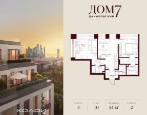 Продается 2-к квартира общей площадью 53.70 кв.м на 10 этаже в жилом квартале премиум-класса "Дом 7 Даниловский".