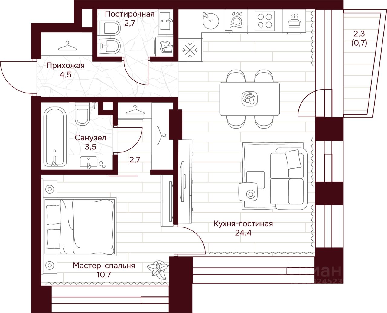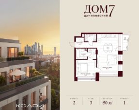 Продается 1-к квартира общей площадью 49.20 кв.м на 3 этаже в жилом квартале премиум-класса "Дом 7 Даниловский".