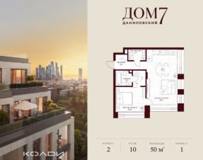 Продается 1-к квартира общей площадью 49.50 кв.м на 10 этаже в жилом квартале премиум-класса "Дом 7 Даниловский".