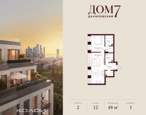 Продается 1-к квартира общей площадью 48.20 кв.м на 12 этаже в жилом квартале премиум-класса "Дом 7 Даниловский".