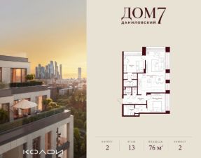 Продается 2-к квартира общей площадью 75.30 кв.м на 13 этаже в жилом квартале премиум-класса "Дом 7 Даниловский".