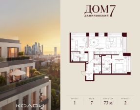 Продается 2-к квартира общей площадью 72.30 кв.м на 7 этаже в жилом квартале премиум-класса "Дом 7 Даниловский".