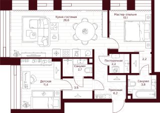 Продается 2-к квартира общей площадью 68.70 кв.м на 11 этаже в жилом квартале премиум-класса "Дом 7 Даниловский".