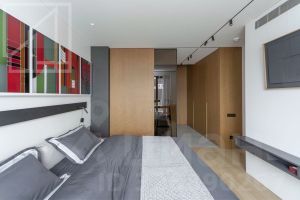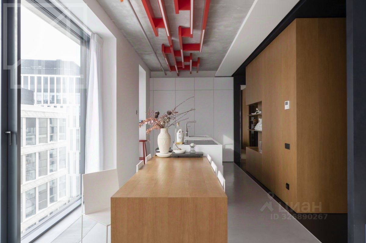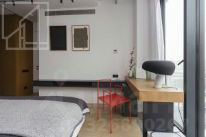Планировка: гостиная-кухня, две спальни, два санузла (в санузле, расположенном в мастер-спальне встроенный хамам), постирочная. Потолки 3,2 м. Видовые окна в пол с видами на центр города. Дизайн от студии Nido Interiors, встроенная мебель по эскизам студии в столярных мастерских "Квинтон", "The Nuts Design", "A&E", мебель Curved от Kristina Dam, Kristalia от Pikaia, Slim Sissi от Zeus, Aura от Rolf Benz, Wai от 1+11. Сантехника Pioli от Antrax, Makro. Имеется вся необходимая для комфортного проживания техника (холодильник и отдельная морозильная камера Liebherr, микроволновка, конвекционная печь с пароваркой, посудомоечная, стиральная и сушильная машины, варочная индукционная панель и теппан со встроенной вытяжкой все фирмы Miele. Интерьеры апартаментов опубликованы в альбоме "Nido" (TATLIN, 2021) и в журнале "ELLE Decoration" (июнь 2021).