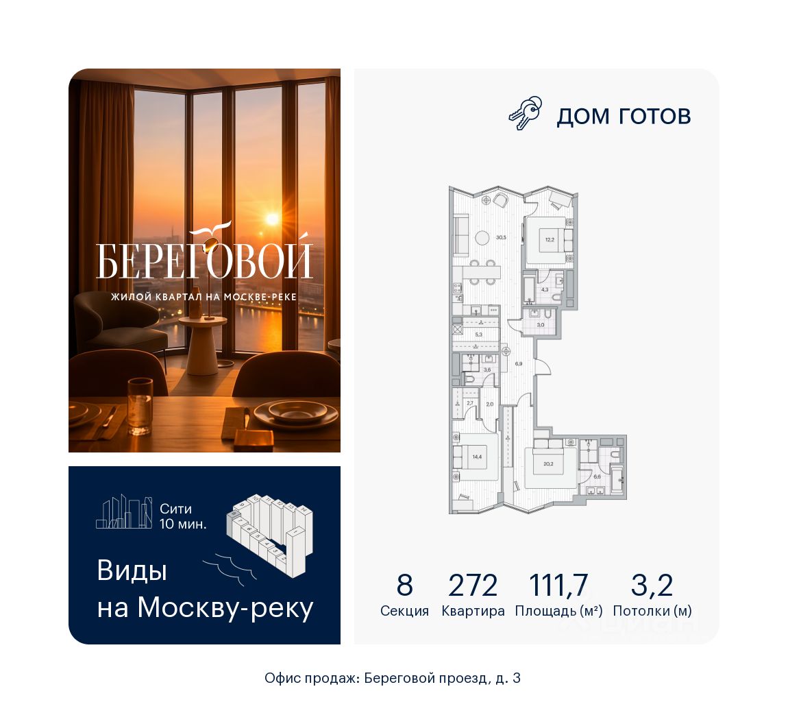 Река. Парк. Сити. Готовый дом в идеальном месте. Продается 3-комнатная квартира на 12 этаже с панорамным остеклением и видом на Москву-реку.