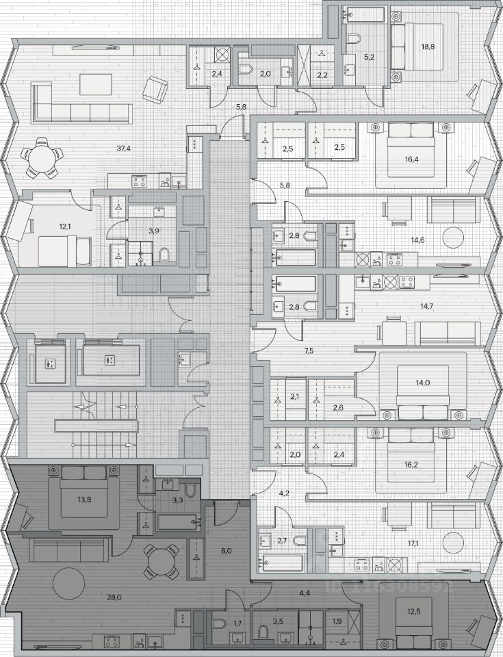 Река. Парк. Сити. Готовый дом в идеальном месте. Продается 2-комнатная квартира на 11 этаже с панорамным остеклением и видом на закрытый парковый двор.