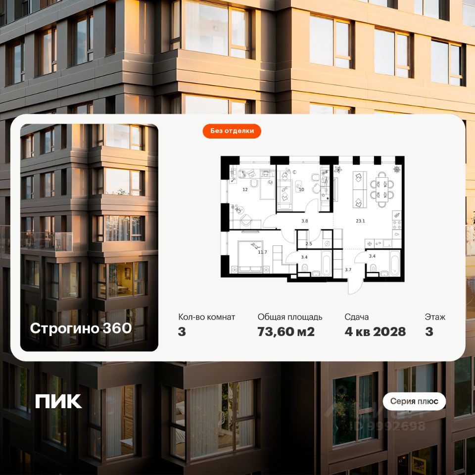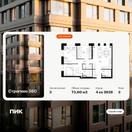 Новостройка! Продается 3-комн. кв-ра площадью 73,6 кв.м, (Корпус 1.1.2, Секция 2) 7 этаж 30-этажного дома в Строгино 360 от ПИК. Проект, где каждый день будет наполнен гармонией и новыми возможностями, где можно найти идеальный баланс между энергией большого города и спокойствием природного окружения. Это настоящая экосистема в окружении четырех парков и набережной Москвы-реки, где современная архитектура, умные технологии и продуманная среда создают новое качество жизни.
