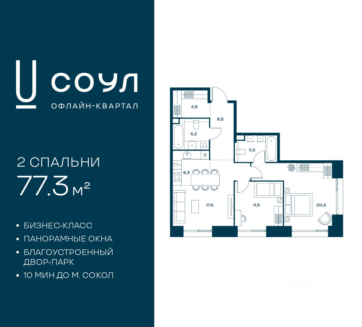 Квартиры с панорамными окнами, мастер-спальнями, гардеробными, классическими балконами и лоджиями, видовыми террасами. Высота потолков от 2,9 до 3,5 м.