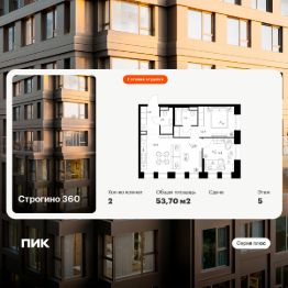 Новостройка! Продается 2-комн. кв-ра площадью 53,7 кв.м, (Корпус 1.1.1, Секция 1) 5 этаж 30-этажного дома в Строгино 360 от ПИК. Проект, где каждый день будет наполнен гармонией и новыми возможностями, где можно найти идеальный баланс между энергией большого города и спокойствием природного окружения. Это настоящая экосистема в окружении четырех парков и набережной Москвы-реки, где современная архитектура, умные технологии и продуманная среда создают новое качество жизни.