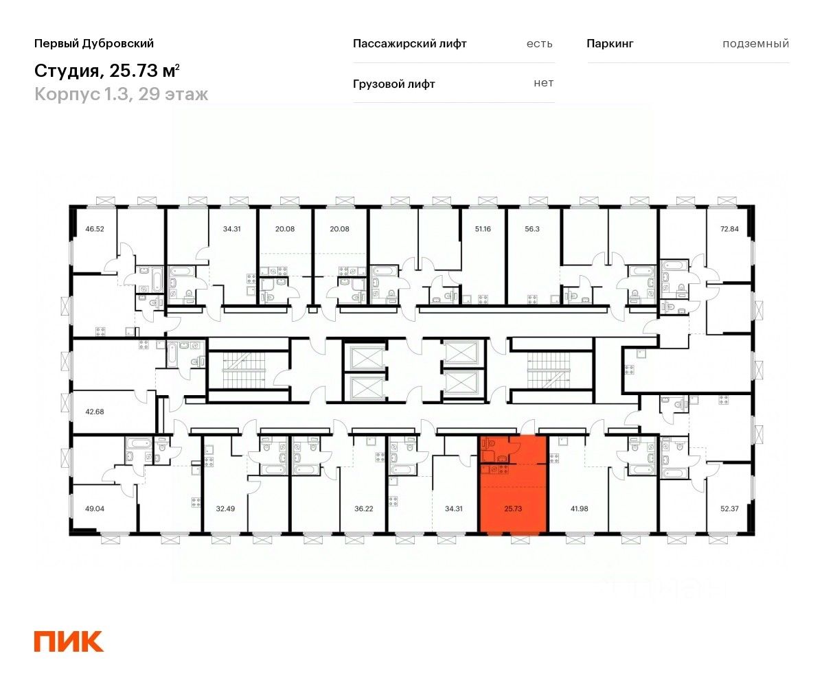 Продаётся квартира-студия площадью 25 кв.м на 29 этаже 33 этажного дома (Корпус 1.3, Секция 1) проекта ПИК Первый Дубровский. Светлый просторный подъезд на уровне земли, функциональная планировка, большие окна, c отделкой.