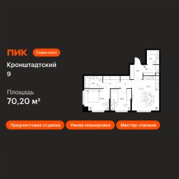 Продаётся 2-комн. квартира площадью 70,2 кв.м на 2 этаже 12 этажного дома (Корпус 1.1.1, Секция 1) проекта ПИК Кронштадтский 9. Светлый просторный подъезд на уровне земли, функциональная планировка, большие окна, предчистовая отделка.