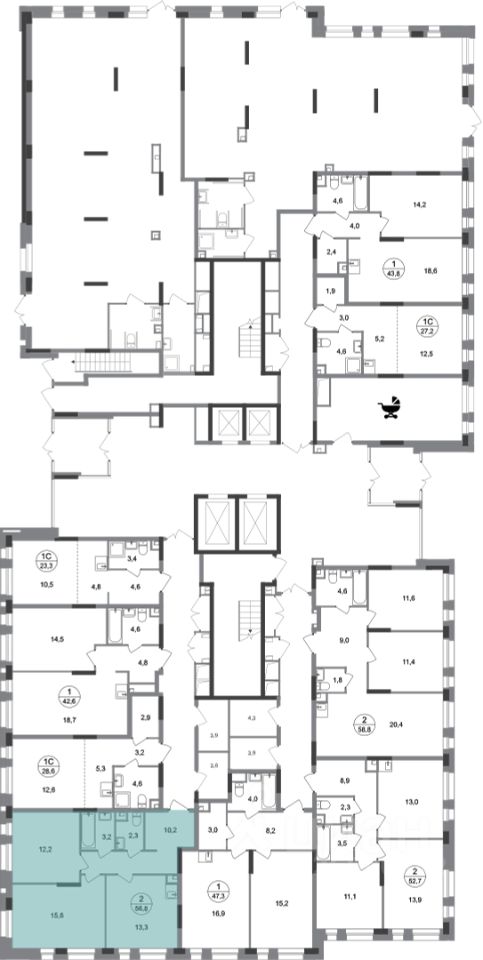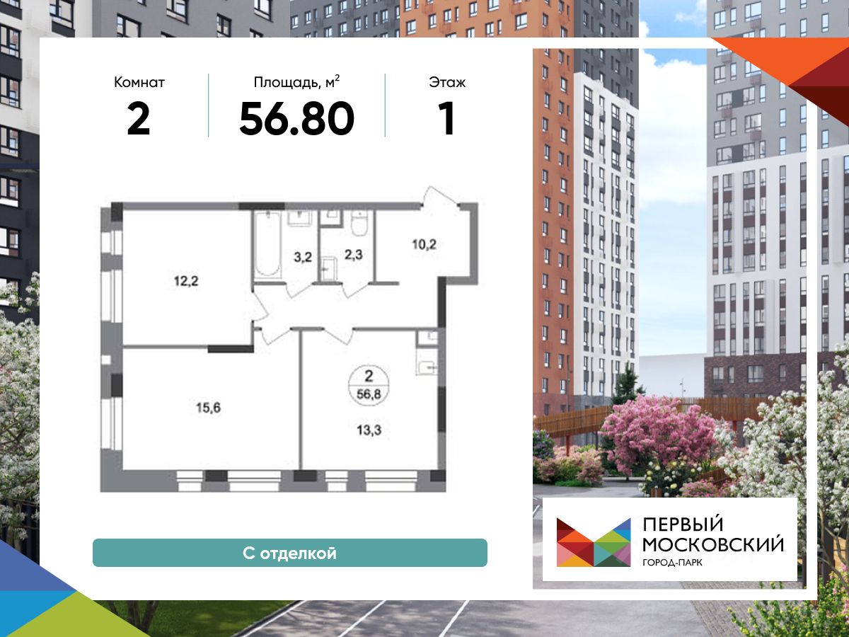 Общая площадь квартиры - 56,8 кв. м, этаж 1 из 19.