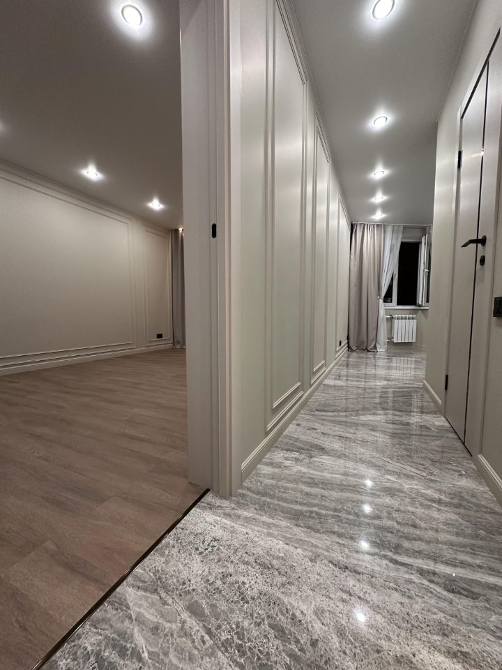 В квартире выполнен ремонт под ключ с полной заменой коммуникаций. Отделка выполнена из премиальных материалов, стены и полы идеально выровнены.