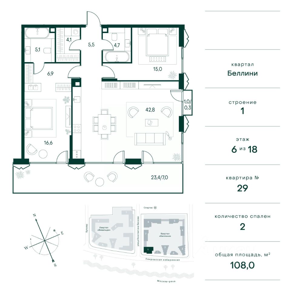 Общая площадь108 м²