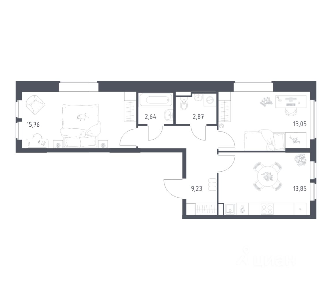 А если не хочется тратить время на ремонт, можно выбрать опцию — с отделкой. Перед тем как отдать ключи, застройщик установит натяжные потолки, поклеит обои под покраску, положит ламинат светлых тонов, а в санузлах — керамическую плитку и керамогранит.