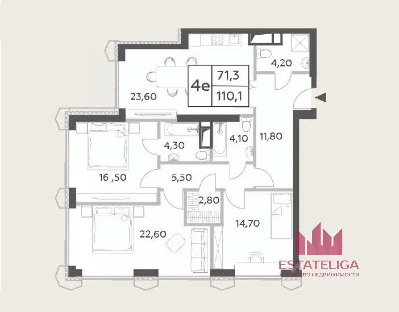 • Рациональная планировка: просторные комнаты и возможность выделить зону для кабинета или мастер-спальни