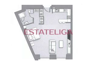Планировка квартиры выполнена в формате студии: зона кухни, гостиная с зоной отдыха и рабочей зоной, зона спальни с полноценной двуспальной кроватью, совмещенный санузел с душем, холл с вместительным гардеробным шкафом.