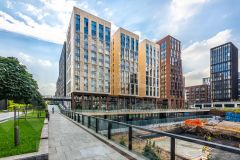 ПАНОРАМНЫЕ ОКНА наполняют квартиру светом, окна выходят на две стороны, в тихие дворы комплекса с видом на МГУ и в сторону пруда.