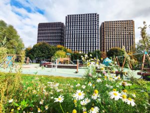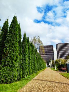 Во 2-ой очереди запланирован собственный Яблоневый сад площадью 550кв.м. Концепция сада получит развитие и на стилобатах между корпусами, запланированы сквозные пешеходные арки, которые соединят дворовое пространство и территорию Битцевского парка.