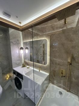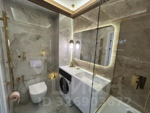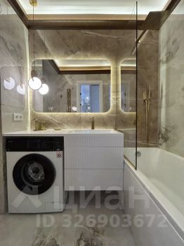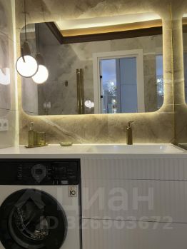 - Санузел: унитаз с инсталляцией, стиральная машина, ванна 155 см, широкий умывальник с тумбой, проточный водонагреватель.