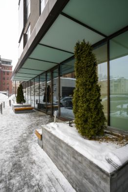 Огороженная территория комплекса охраняется и находится под круглосуточным видеонаблюдением. Доступ в комплекс осуществляется по электронным пропускам, действует лифтовая система контроля доступа на каждый этаж. В комплексе предусмотрена собственная служба консьержей. В подземных этажах располагается двухуровневый паркинг. Придомовое пространство оформлено с применением элементов ландшафтного дизайна.