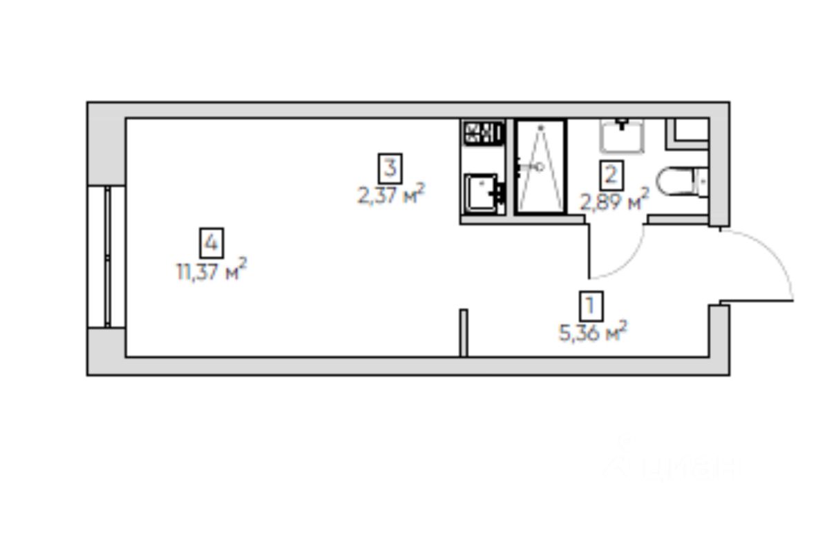 Студия 22 кв.м. с удобной планировкой, где Вы сможете воплотить комфортные для проживания дизайнерские решения.