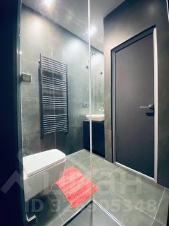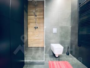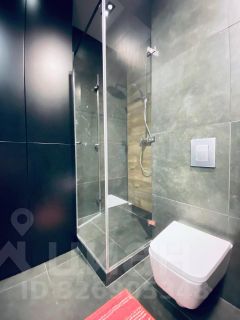 Ванная комната с душевой кабиной совмещена с санузлом, облицована плиткой в контрастных тонах. круглосуточная охрана ЧОП.