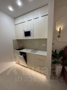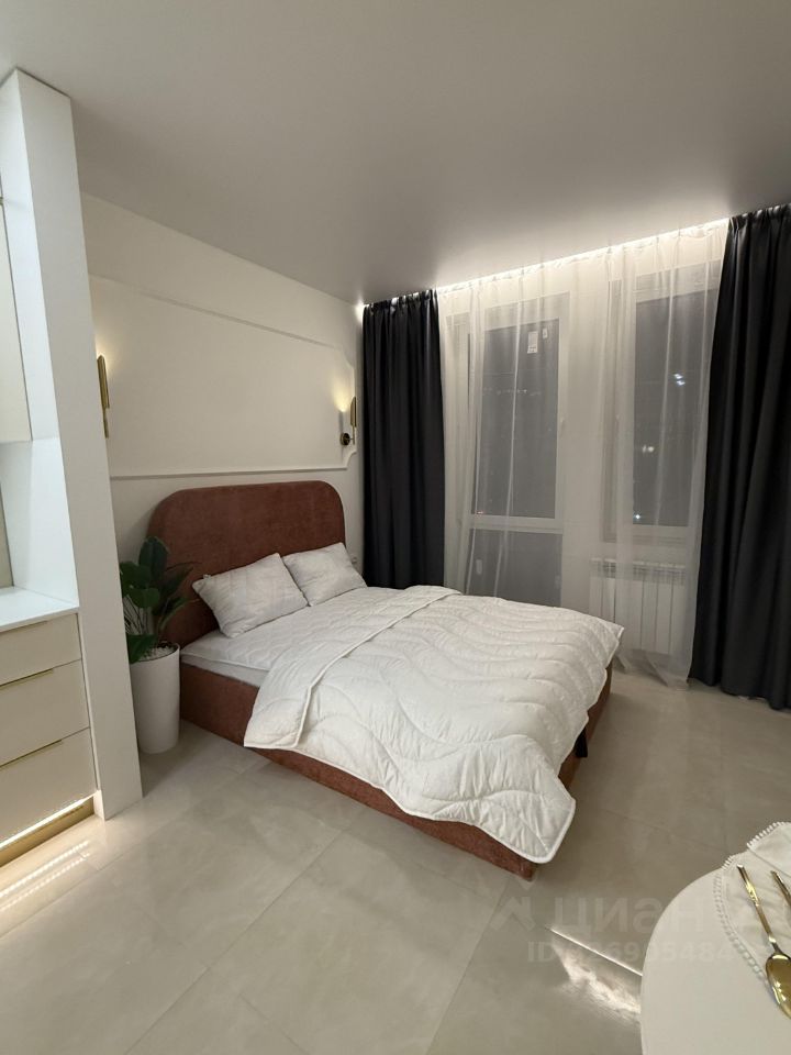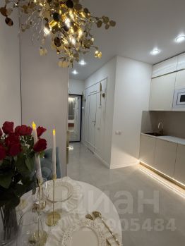В квартире выполнен дизайнерский ремонт с использованием качественных материалов. Пространство студии организовано максимально функционально: здесь можно выделить зону отдыха и рабочую зону. Совмещенный санузел оборудован современной сантехникой. Интерьер выполнен в светлых тонах, что визуально увеличивает пространство.