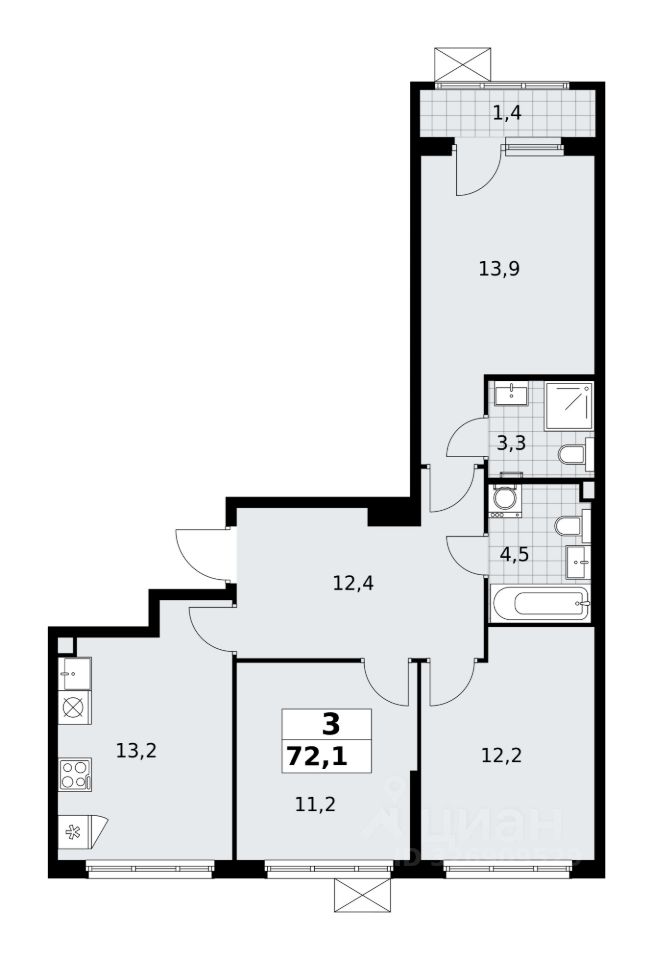 Просторная 3-комнатная квартира 71,9 м² в ЖК Деснаречье