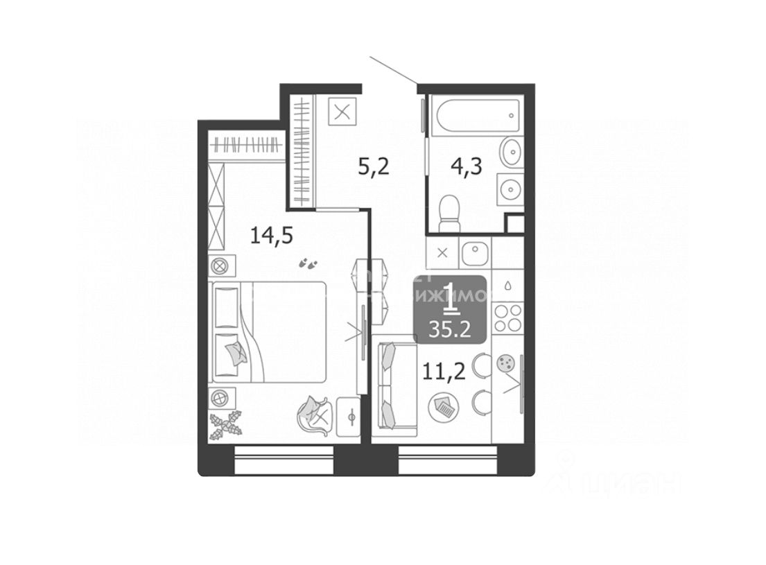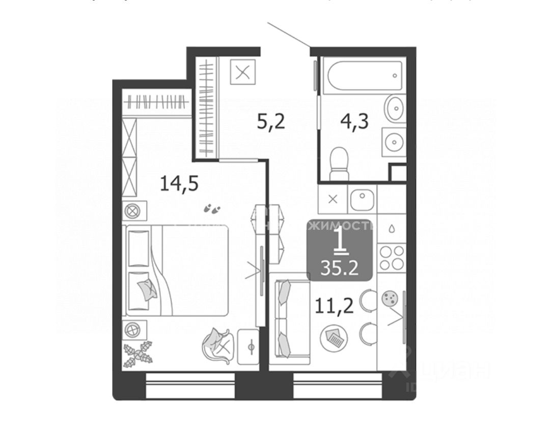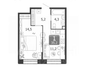 Приглашаю к покупке 1-комнатной квартиры 35.2 м² на 2 этаже.