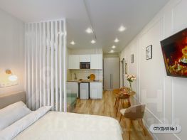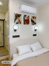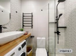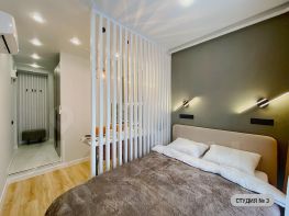 Апартаменты с современным ремонтом разделены на три изолированные студии ~ по 15 кв.м. Каждая студия полностью укомплектована мебелью, техникой, всем необходимым для сдачи жилья.
