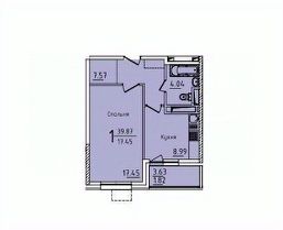 - кухня 9 м² + застекленная лоджия 3,5 м²