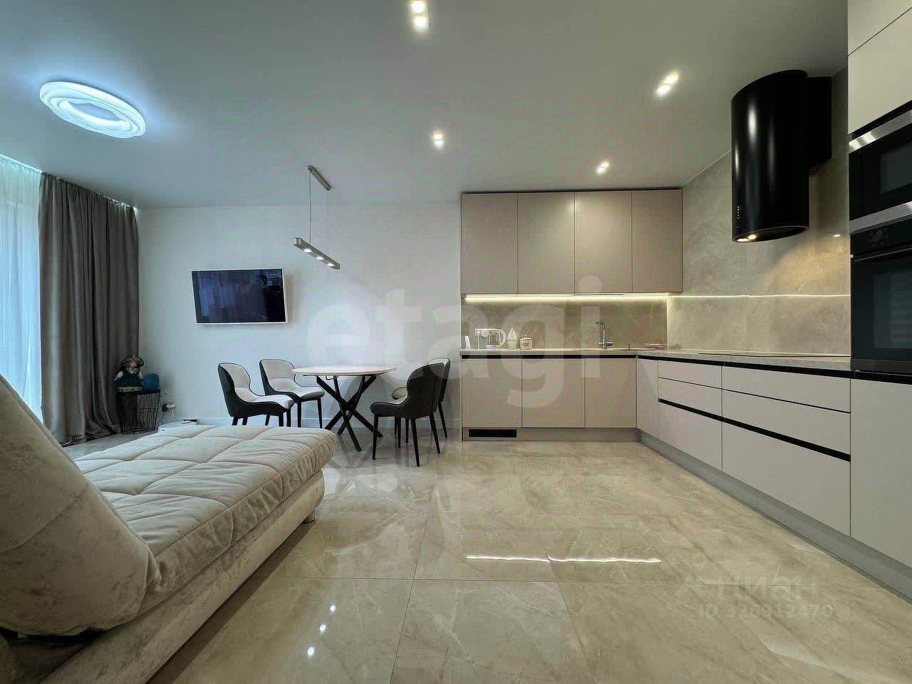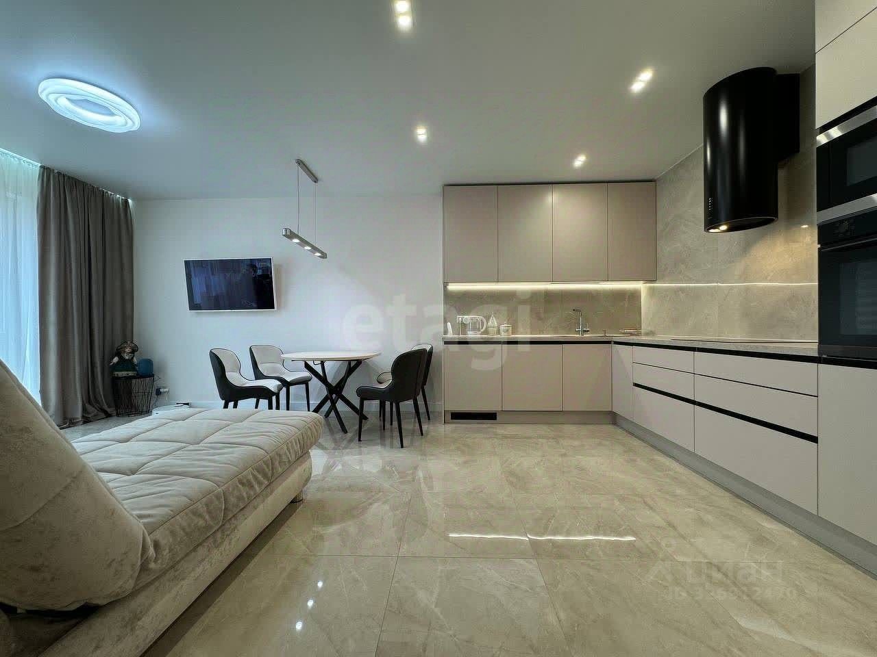 2 санузла с красивой подсветкой. Кухня встроенная со всей бытовой техникой (посудомоечная машина, духовой шкаф, варочная панель,2 холодильника.