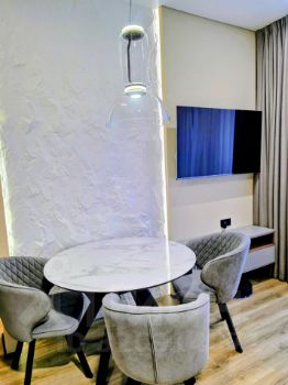 Квартира с дизайнерским ремонтом, в котором использованы современные и качественные материалы. Перепланировкам не подвергалась. Квартира продается полностью оборудованной мебелью и техникой: холодильником, посудомоечной машиной, варочной панелью, духовым шкафом и микроволновой печью фирмы Bosch, вытяжкой, стиральной машиной LG, двумя телевизорами. В систему "Умный дом" интегрирована Яндекс станция. В квартире установлена сплит система, система защиты от протечек. Продуманы системы хранения.