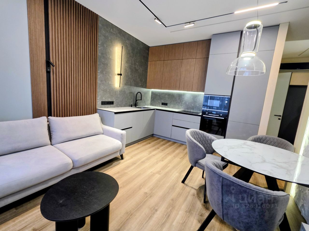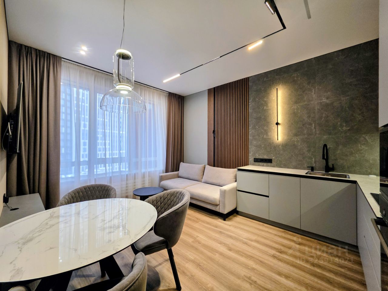 Продается стильная квартира с кухней-гостиной и спальный 46,3 кв.м. Квартира расположена на 19 этаже во второй секции дома. Высота потолков — 3 метра.