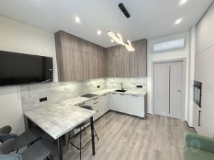 1033 Предлагается к продаже уникальная евродвухкомнатная квартира с панорамной лоджией в жилом комплексе Бизнес класса - Вдохновение в пешей доступности от двух станций метро: до Бульвара Рокоссовского - 20 минут, до Преображенской площади - 24 минуты. Одно из главных преимуществ района - это соседство парком Сокольники и с национальным парком Лосиный остров. ЖК построен в 2023 году, состоит из двух корпусов переменной этажности. Дом небольшой, всего 212 квартир. На площадке от 4 до 6 квартир. Высота потолков - 3,2 метра. Двор закрытый с видеонаблюдением, детской площадкой с горкой, качелями и скамейками. В каждой секции дома есть место консьержа, колясочная и туалет. Подземный паркинг насчитывает на 123 места, цена паркинга 2 550 000, при по покупке квартиры скидка на паркинг 300 000 рублей. Квартира находится на 4 этаже, имеет интересную планировку: Общая площадь 45,7 м2+ лоджия 7.7 м2, кухня-гостиная 15 кв.м. с выходом на лоджию, комната 16.0 м2 с выходом на лоджию, гардеробная 3.7 м2, совмещенный санузел 4.0 м2 и просторная прихожая 5.4 м2. Квартира продается с дизайнерским ремонтом, оборудована мебелью техникой, текстилем, светильниками, и др. интерьерными элементами. НИКТО НЕ ЖИЛ! ВСЕ БЕЗ ИСКЛЮЧЕНИЯ АБСОЛЮТНО НОВОЕ И ВХОДИТ В СТОИМОСТЬ КВАРТИРЫ, а именно: - Натяжные потолки с современными встроенными и подвесными светильниками, - Пол в комнате и кухне ламинат, на балконе и в санузле керамогранит с теплым полом, - Стены в кухне, комнате и коридоре окрашены износостойкой матовой краской DULUX DIAMOND, - Выключатели и розетки фирмы Schneider Electric с мастер выключателем, - Межкомнатные двери-экошпон, - В Ванной комнате: акриловая ванна, душевая система, гигиенический душ, смесители, стеклянная шторка на ванну, полотенцесушило, зеркало с подсветкой, тумба со встроенной раковиной, подвесной унитаз, дверки над коробом с инсталляцией, проточный обогреватель, стиральная машина, - Установлены кондиционеры фирмы Xaier, - В кухне установлен кухонный гарнитур, выполненный под заказ, техника фирмы MAUNFELD (встроенный холодильник, посудомоечная машина, духовой шкаф, варочная поверхность, вытяжка). Диван, стол, мягкие стулья, телевизор, шторы, - В спальне: кровать (180), две подвесные тумбочки, подвесная тумба, консольная тумба, выполнены по индивидуальному проекту, зеркало, мягкий стул, телевизор, шторы, письменный стол и мягкий стул, бра, - На лоджии: стеллаж, полубарный столик, выполнены под заказ, барные стулья, 2 кресла, журнальный столик, Гардероб: система для хранения вещей выполнена под заказ, В коридоре: шкаф для вещей, выполненный по индивидуальному проекту, зеркало с подсветкой, пуф. В пешей доступности вся необходимая инфраструктура: школа, детский сад, поликлиника, рядом магазины Дикси, Пятёрочка, Магнит, Красное/Белое, пункт выдачи заказов WB и Озон, стадион Спартаковец. Квартира продается в прямой продаже, никто не зарегистрирован, полная стоимость в договоре.