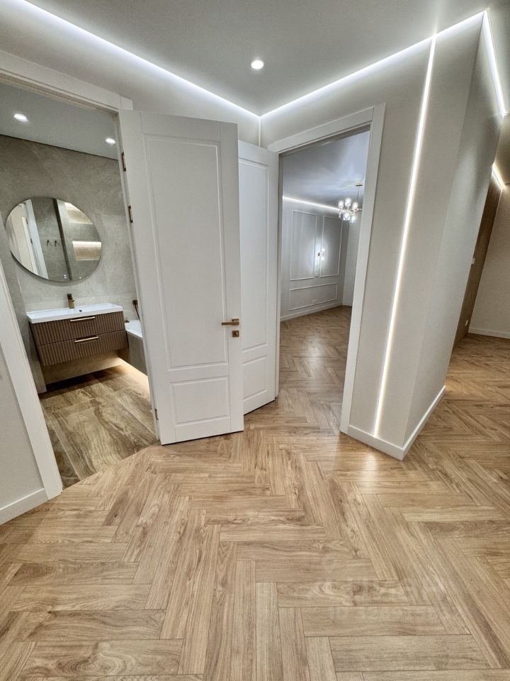Продается новая квартира в новом доме с ремонтом "под себя", площадью 98 кв.м. плюс теплая лоджия, площадью 3.5 кв.м. Правильная планировка: есть 2 спальни, площадью 18.7 кв.м. и 17.4кв.м., гостиная, площадью 18.5 кв.м. и просторная кухня-столовая , площадью 16 кв.м. , 2 полноценных санузла. Есть гардеробная. На балконе стоят батареи (от застройщика), поэтому его можно использовать как кабинет или веранду для вечерних семейных чаепитий. В квартире при ремонте использованы современные импортные материалы :стены - покраска с декором и стеновыми панелями из натурального дерева (дуб). В основном санузле установлена ванная с тропическим душем, система теплй пол, раковина, есть место под стиральную и сушильную машинки. Во втором санузле душевая кабина, раковина. Полы: ламинат елочка и керамогранит. Вся квартира выполнена в теплых пастельных тонах. Установлены все потолочные и настенные светильники, кондиционеры. Дренажная система кондиционеров выведена в канализационную трубу, высокие межкомнатные двери имеют высоту -230 см, деревянные подоконники, теневые потолки, видеодомофон. Красивые виды из окон. Концепция дома -двор без машин. В доме есть подземный паркинг. Вокруг комплекса много свободных парковочных мест. До метро шаговая доступность.У дома закрытая территория с детской площадкой.